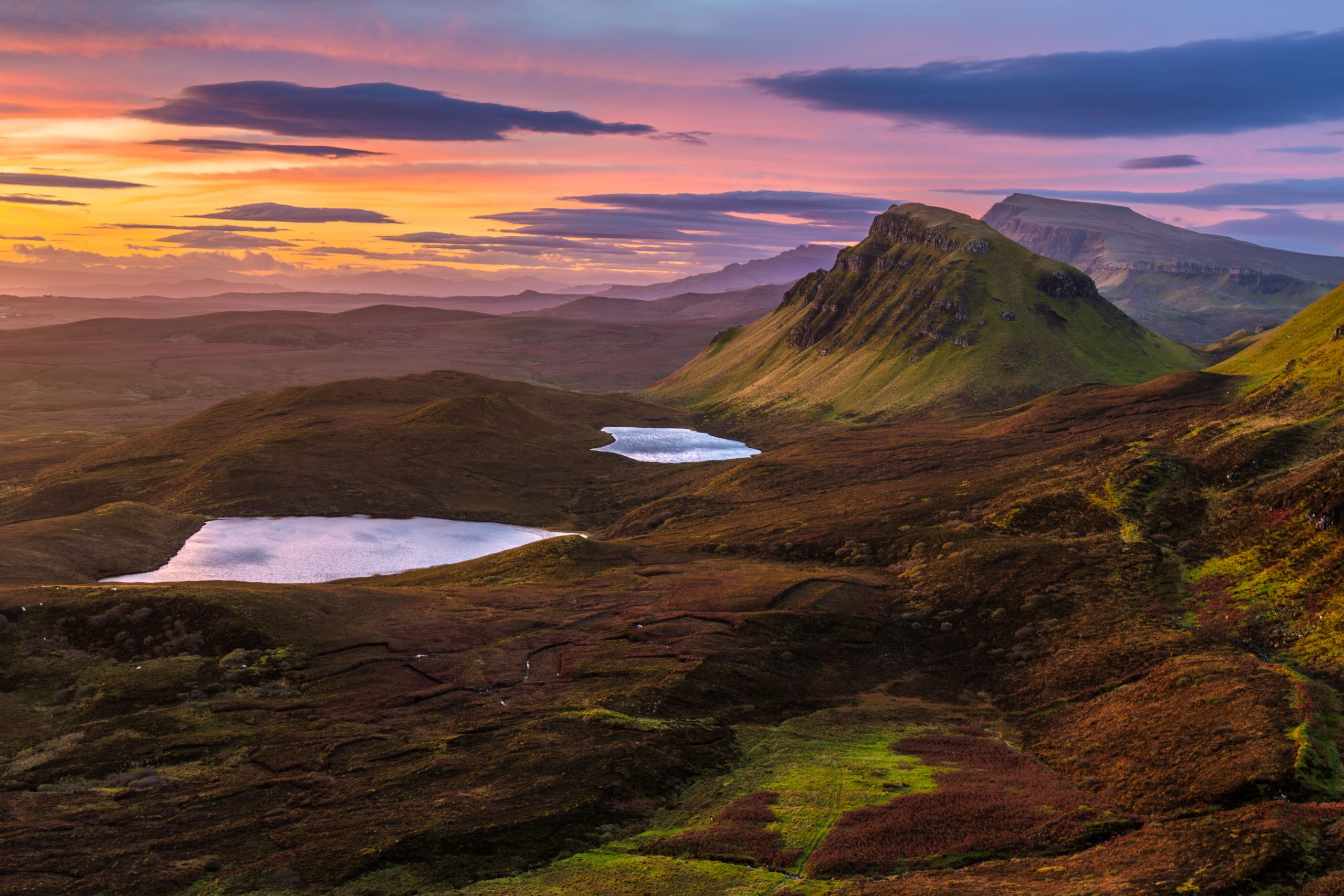 波特里(Portree) → 奎拉因(Quiraing) → 利特瀑布(Lealt Falls) → 裙岩(Kilt Rock) → 史塔芬(Staffin) → 鄧圖姆城堡(Duntulm Castle) → 尤恩城堡(Ewen Castle) → 波特里(Portree) 早上到奎拉因拍攝日出,之后去利特瀑布,裙岩拍攝風景,午餐在史塔芬。下午到鄧圖姆城堡拍攝,黃昏到尤恩城堡拍攝日落。 住宿: 波特里鎮 |